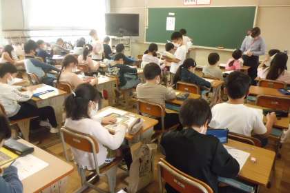 1組は特活で,キャリアパスポートを作っていました。2組は算数で,グループ学習のグループの作り方などを聞いていました。3組は図書で,学校図書館の使い方について,確認していました。
