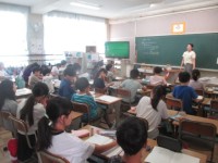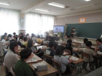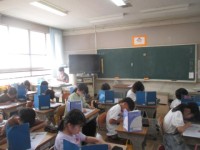 (上)1組では13日の校外学習に向けてしおりを見ながら話をしています(中)2組ではスポーツテストで行われる上体起こしの練習をしています。(下)3組では47の都道府県が漢字で書けるかをタブレットを使ってチャレンジしています。