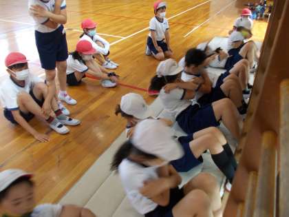 (上)1組では13日の校外学習に向けてしおりを見ながら話をしています(中)2組ではスポーツテストで行われる上体起こしの練習をしています。(下)3組では47の都道府県が漢字で書けるかをタブレットを使ってチャレンジしています。