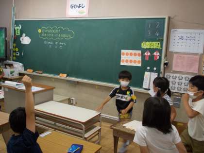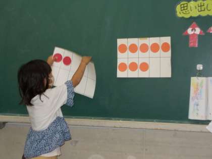 あわせて10になる問題をチームに分かれ,出し合うゲームをしています。