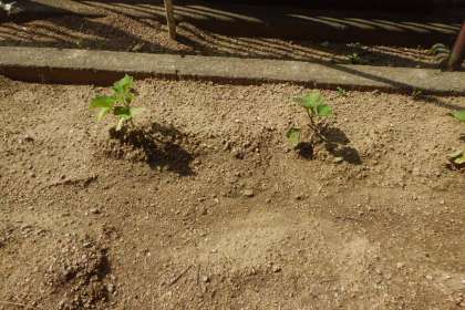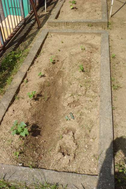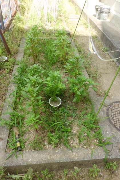 理科室横の花壇に苗が植えられています。何の苗だかわかりますか?