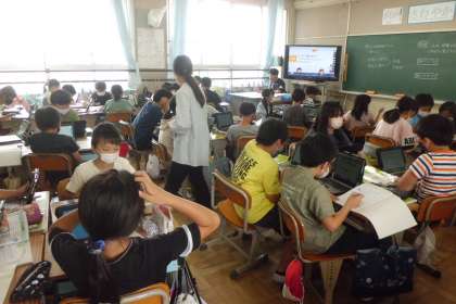 1組は外国語で,リスニングをしていました。2組は理科で,「ヒトのたんじょう」にかかわって,調べてみたいことをグループで話し合っていました。4組は国語で,説明文の構造について学習していました。