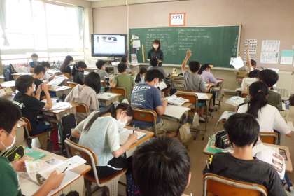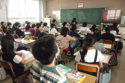 1・3組が社会をしていました。1組では大和朝廷について,3組では大昔のくらしでコメ作りが始まったころの学習をしていました。