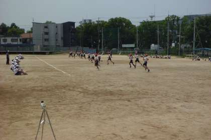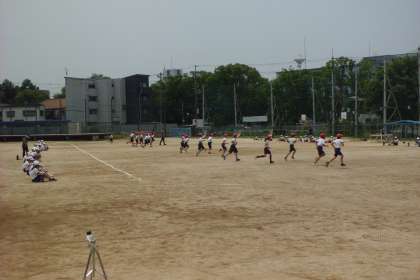 シャトルランをしていました。暑い中での運動ですから,しっかり水分補給してください。よく頑張りました。