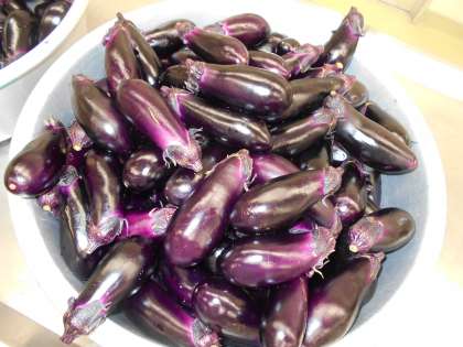 なすの紫色は「ナスニン」という色素が含まれているためです。給食場にも新鮮ななすが届きました。今日はみそを使って甘辛く味付けした「なすの田楽」で登場しました。給食時間の様子を見ていると,好ききらいがはっきりと分かれていたようです。