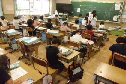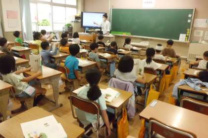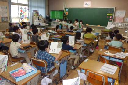 1・2組は国語で,1組は「ねことねっこ」,2組は「くちばし」の音読をしていました。3組は生活で「がっこうをしょうかいしよう」ということで学校にあるいろいろな教室についての説明を考えていました。