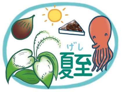 今日は1年のうち昼間の時間(日の出から日の入りまでの時間)が最も長い『夏至(げし)』の日です。夕方に「外が明るいから気づかなかったけど,もうこんな時間になっている!!」と思ったことはないですか?これから気温は上がり,暑さは日に日に増していきますが,昼間の時間は冬に向かって少しずつ短くなっていきます。ジメジメとしていて,疲れやすい時期ですが,しっかり食べて健康な体を作りましょう。