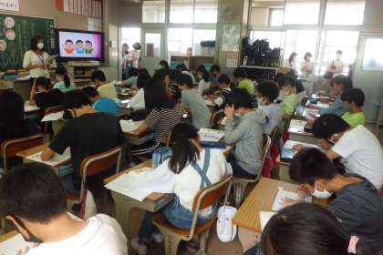 6年の3時間目の参観は,どの学級も道徳でした。「気に入らなかった写真」という教材で,情報モラル,肖像権,個人情報などについて考える学習をしていました。写真は1・2組の様子です。