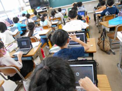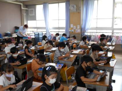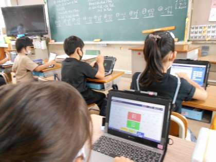 算数の練習問題を終え,時間に余裕のある子たちは,タブレットを使ってどんどんたくさんの問題に挑戦しています。