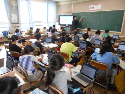 4年生は来週に校外学習で柏原市へぶどう狩りに行く予定です。そこで社会では,どうして柏原市では,ぶどうが多くとれるのかを考えています。どういう場所がぶどうの生産に適しているのかを知り,柏原市がそれに当てはまるのかを資料をみて判断しています。