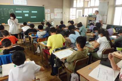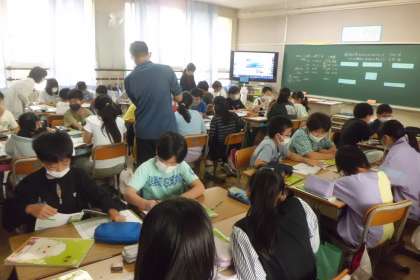 理科専科による理科の公開授業がありました。世界でも降水量の多い日本。私たちは雨や雪でどのような災害や予防をしているのか,また,どのような恵みを受けているのかについて考える学習をしていました。