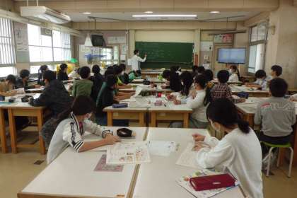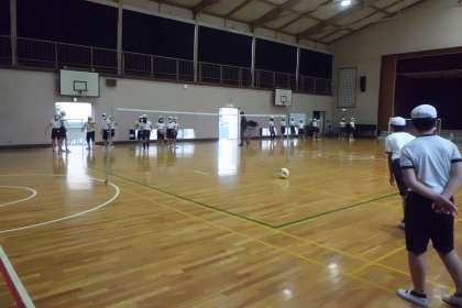 1組は家庭で,「バランスのとれた1食分の献立」について話し合っていました。3組は体育でソフトバレーボールをしていました。写真はサーブ練習の様子ですが,なかなか相手コートに入らず苦戦していました。