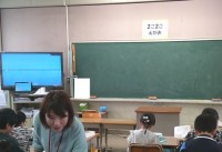 1組は国語で「楽しかったよ,二年生」という教材の学習です。生活科とも関連した学習で、行事や遊び、勉強などで楽しかったことをもとに作文を書くようです。2組は算数のテストをしていました。3組は参観に向けて、振り付け入りの歌を歌っていました。