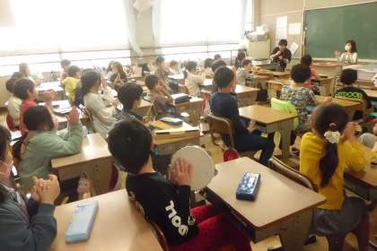 ミニ先生が前にでて、リズムの学習をしています。