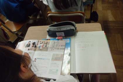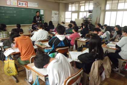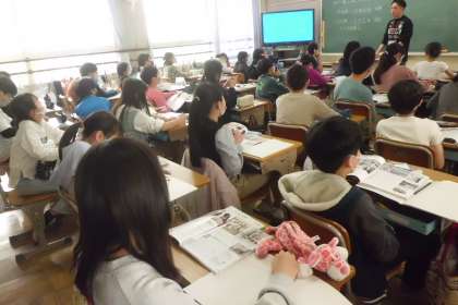 日本国憲法について先生が説明をしています。みんな、しっかり聞いていました。