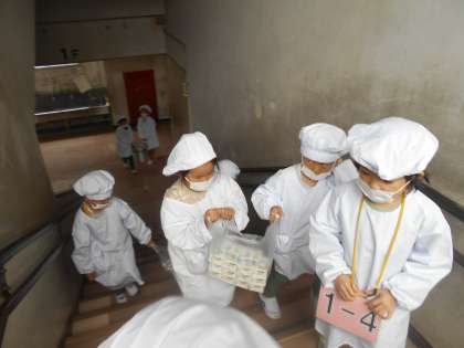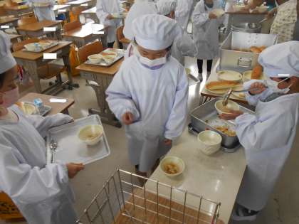 週が変わったので給食当番が変わります。初めての子たちががんばっています。先週の様子をしっかり見ていたようで、とてもテキパキ動けていてすごいです。