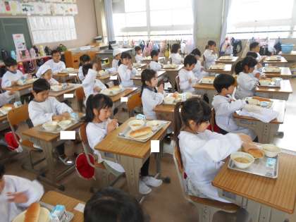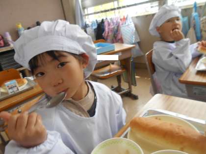 「おいしい!」「ぼく、きゅうしょくすきー」といろいろなうれしい声がきこえてきます。