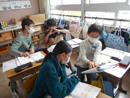 合同な三角形の描き方を考えました。久しぶりのコンパスを使った作図に戸惑っている人もいましたが、多くの人が自分の考えを友達に伝えることができていました。