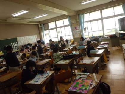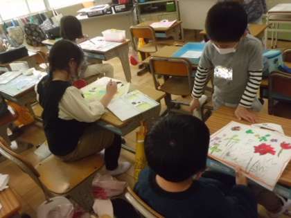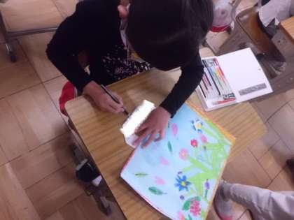 「かばんの中に春をたくさんつめこんででかけよう」の仕上げに取り組んでいます。