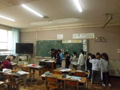 4組の算数、少人数授業、少人数教室のようすです。