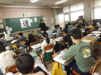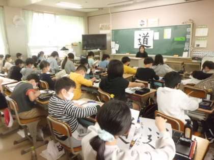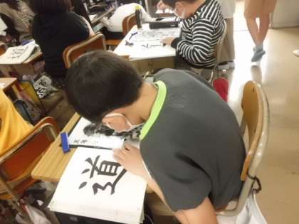 書写「道」に取り組んでいます。「しんにょう」が難しいですね。みんな真剣です。