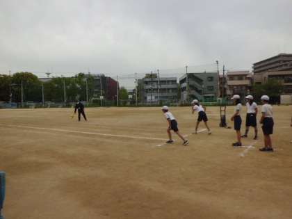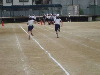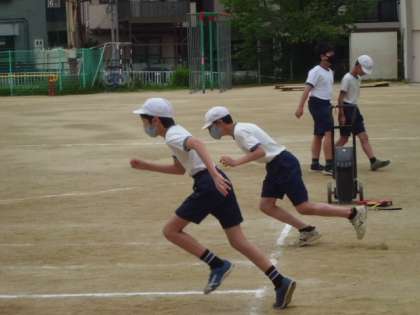 4組の体育「50メートル走」のようすです。
