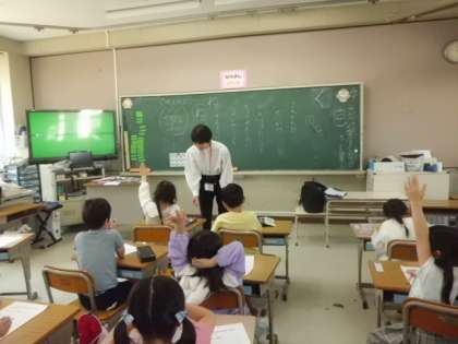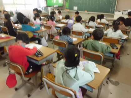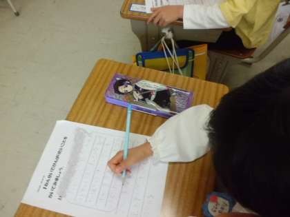 「1年生でがんばりたいこと」をワークシートに書いています。