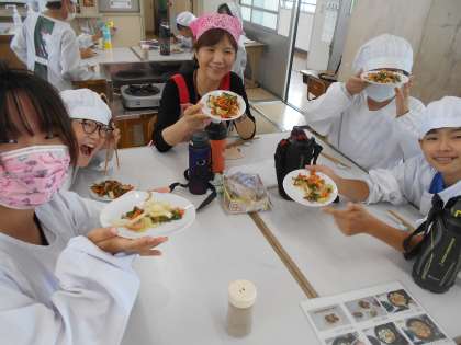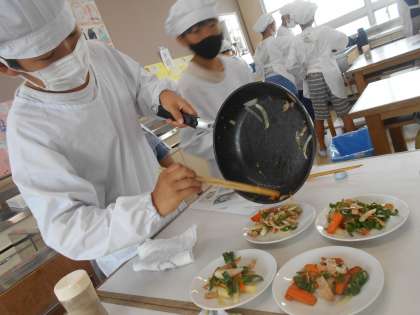 テキパキと仕事をこなし、期待していた通りの野菜炒めができあがりました。味も見た目もばっちりです。次回の授業までにぜひお家でもチャレンジしてみましょう。