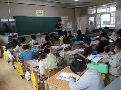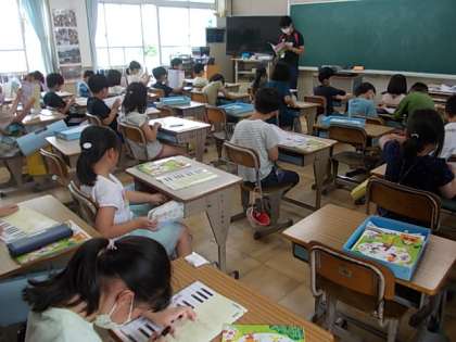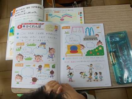 そのあと、♪「かくれんぼ」のページを記入していました。