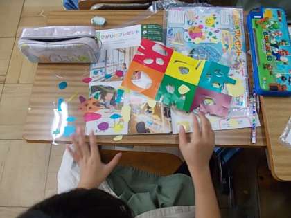 2組の図工「光のプレゼント」の学習です。