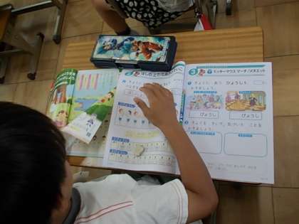 音楽ワークの♪「かくれんぼ」「はしの上で」のページに取り組んでいました。