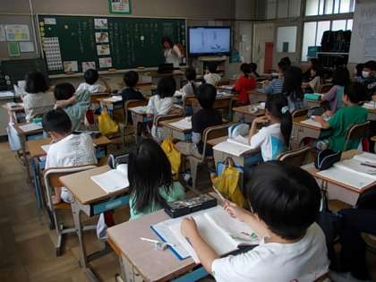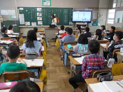 先生が実際にランドセルを背負い「こんな感じ」と情景がわかるようにみんなに見せていました。