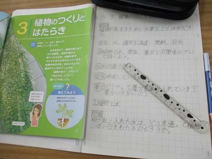 今日は、「植物の水、空気、養分の関係について調べよう」に取り組んでいました。