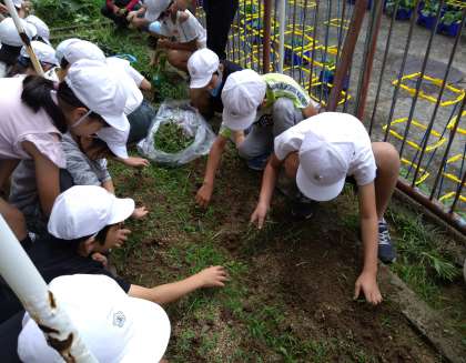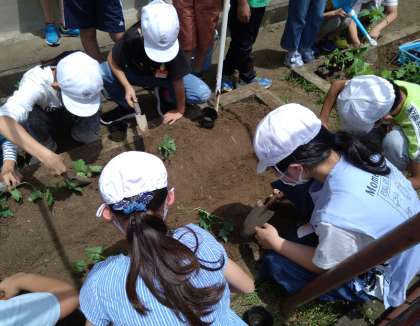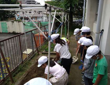 今日は天気がよかったのでヘチマの植え替えを行いました。