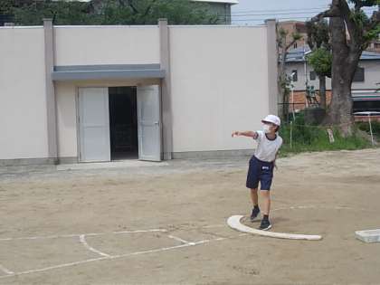 ソフトボール投げに挑戦です。