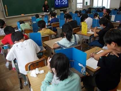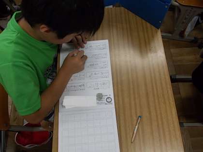 今日は「こまを楽しむ」の漢字のテストをしています。