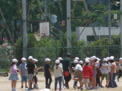 3年2組は「みんな遊びです。」と先生も運動場にかけていきました。