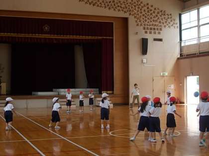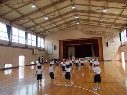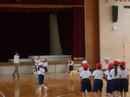 体育館でドッチボールをしていました。