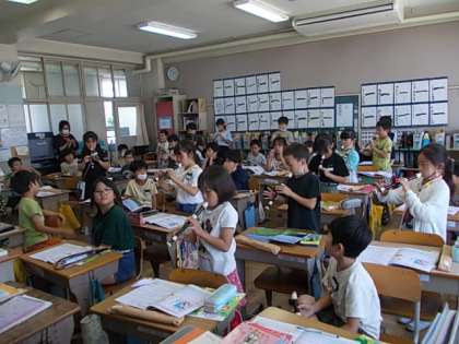 リコーダーで「かえるがなくから」の曲に挑戦していました。