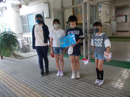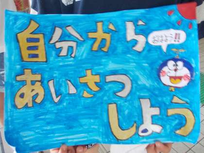 生活委員会が登校してくる子どもたちに、あいさつ運動をしています。