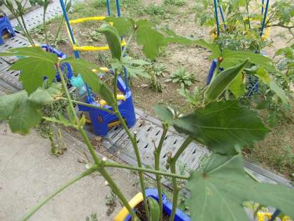 オクラやミニトマト、ナスビ、シシトウ、ピーマンなどが実っています。