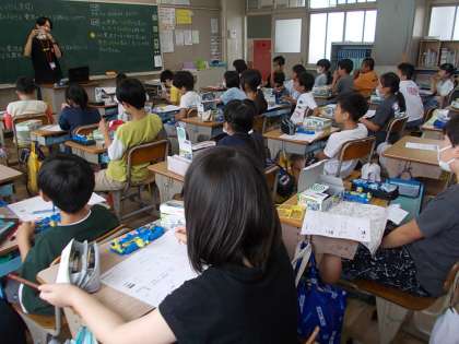 今日は、乾電池を回して、モーターのまわり方を調べます。