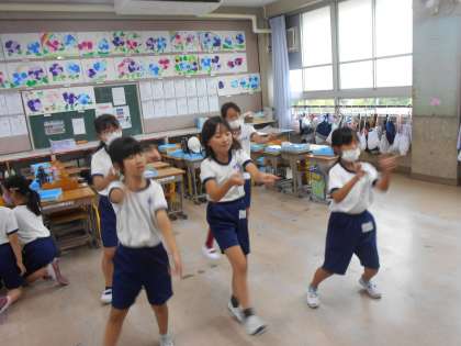 (下)ダンスクラブの様子です。グループに分かれて、ダンスの練習をしています。自分たちの動画を撮り、それを見て改善しています。とても楽しそうです。