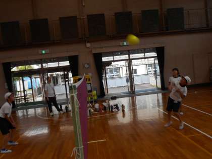 (上)ソフトバレークラブの様子です。ルールを工夫しながら試合を楽しんでいます。以前より上達していて、ラリーも続くようになってきました。