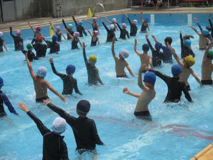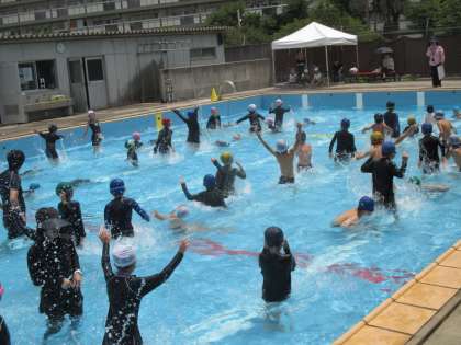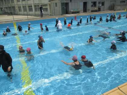 3番目は、水に浮く練習です。「だるま浮き」「大の字浮き」「くらげ浮き」の3つの浮き方にチャレンジしました。