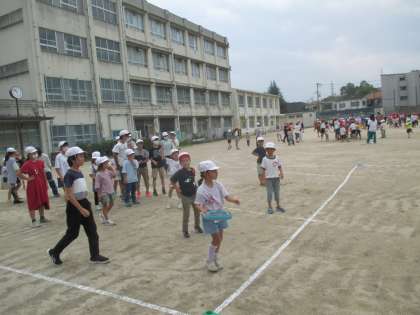 6年生と1年生が協力しあい,楽しくドッジビー大会を行うことができました。