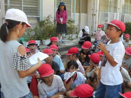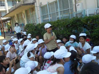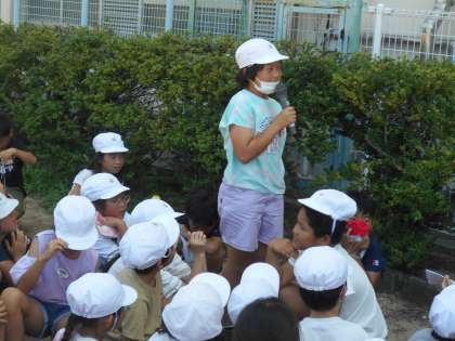 閉会式では児童が感想を発表しています。「楽しかったです。」「4年生がドッジビーを譲ってくれて優しかったです。」などの声がありました。