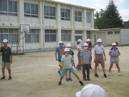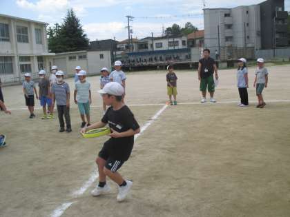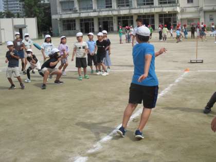 2組A対3組Aチームです。黄色のドッジビーは、3年生しか投げれません。