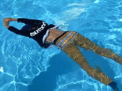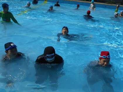 今年度の水泳の学習も今日で最後になります。6年生が水難事故から身を守るために着衣して水泳の授業に参加しています。毎年、水での事故で命を落とす人がおり、今年もすでにニュースで伝えられています。夏休みには海や川で遊ぶ機会が増えます。悲しい結果とならないよう、もしもの場合に備えどうすれば、身を守れるのかを学んでいます。