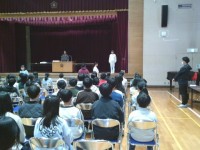 体育館でみんなで楽しく「しっぽとり」ゲームをしていました。